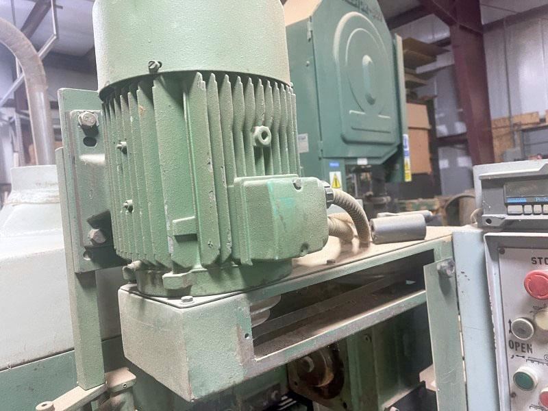 PINHEIRO PMC 4-450 Four Sided PlanerSpecifications: -- 18" x 6" Max. cap. motorized opening, -- Top head 18 HP, -- Bottom head 12 HP motor, -- Both side head motors are 9 HP; -- All spindles 40 mm dia.; -- Digital readouts on top and outboard left spindles, 5" max. tool dia. -- Max. profile depth of side heads 1" max. -- 5 HP Feed motor, (6) feed speeds between 10 & 75 FPM, (To be confirmed) -- (4) powered feed rolls, sectional feed rolls, sectional chipbreaker, central lubrication system. Includes: -- Sound hood, Star Delta motor starters,