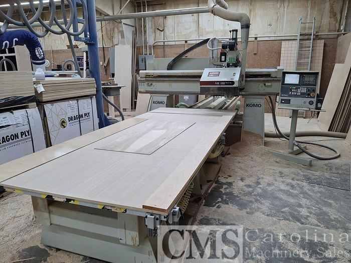 Approx 15 HP main router motor drilling on X and Y axis moving table on x axis with tooling located in bridge and moves on Y axis. 8 position rotary tool changer 40 HP vacuum pump included 480 volt 3phase