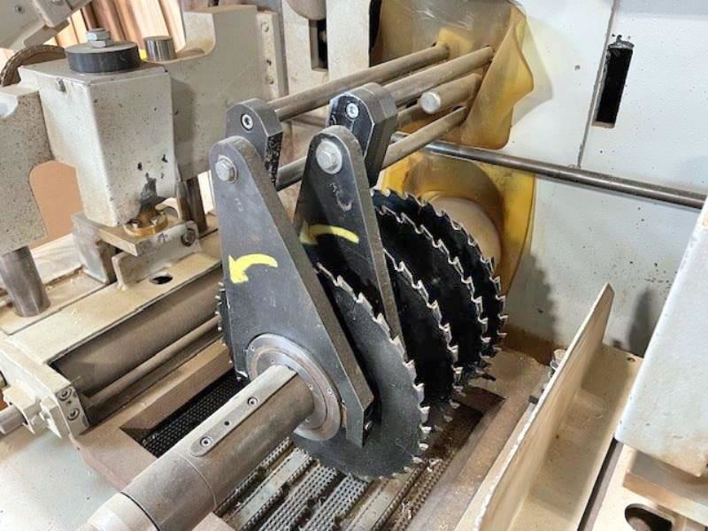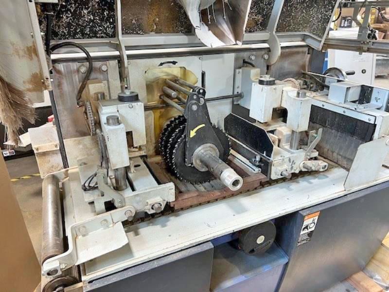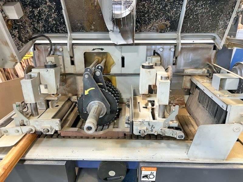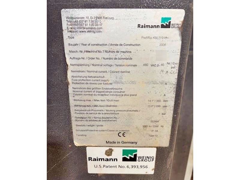 Raimann ProfiRip KM-310 M --Model: KM-310 M/ ProfiRip KM-310 M --Year: 2006 --Voltage/ Phase: 460 V, 3 Phase --# of Movable Blades: 2 --Max Cutting Width: 310mm (12.2") --Max Cutting Height/Thickness: up to 120mm (4.7") --Blade Diameter: 280mm to 360mm (11" to 14.2") --Arbor/Spindle Diameter: 80mm (3.125") --Motor/Power: 50 HP --Arbor/Saw RPM: 4200 RPM --Feed/Infeed Speed: up to 115 FPM --Drive/Feed Motor: 1.8 HP Feed Motor --Additional Features: "Quick Fix" Arbor System for fast blade change over, Anti-kickback fingers, laser guided lights.
