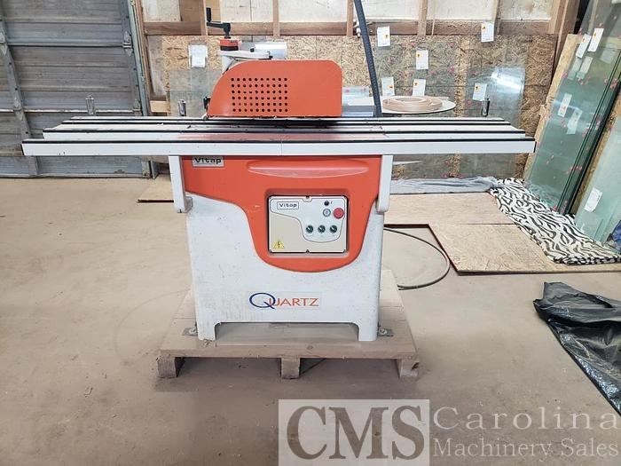 Vitap Quartz Edgebander Hot air Edgebander for pre-glued edging material 0.4-1.2 mm Will accept panels up to 35mm thick Electronically controlled temperature setting up to 650^F Guillotine style end trim & top/bottom flush trim 16 FPM feed 67" x 48" x 60" 220#