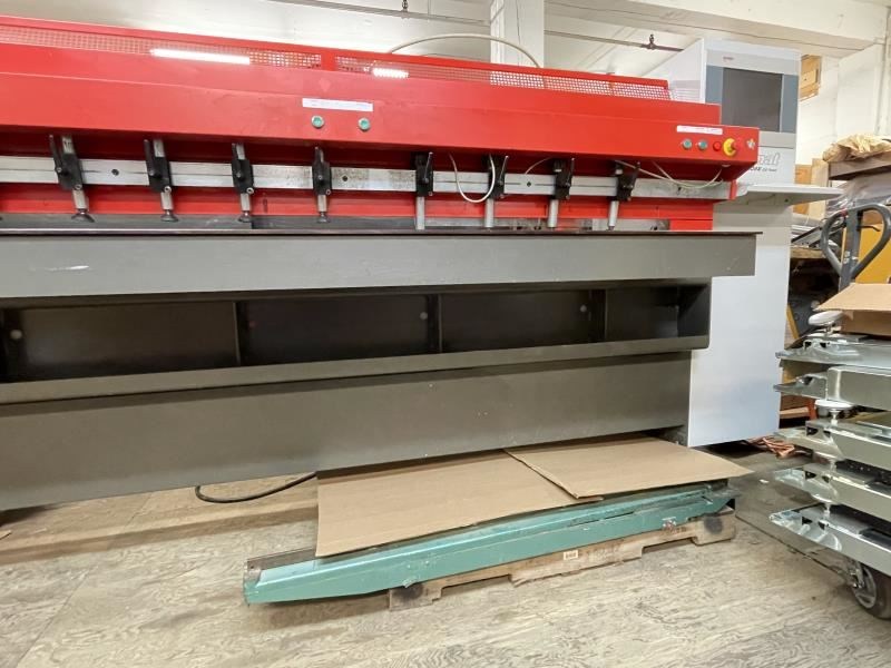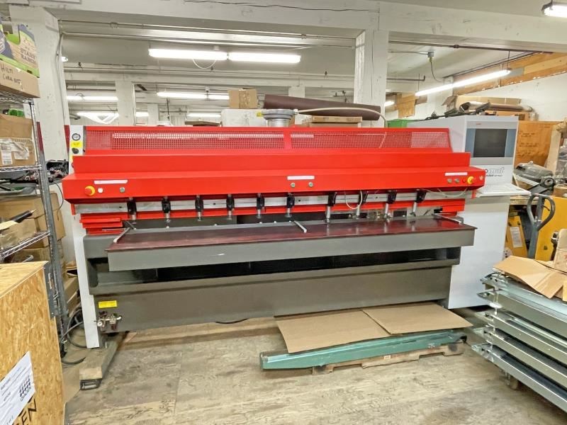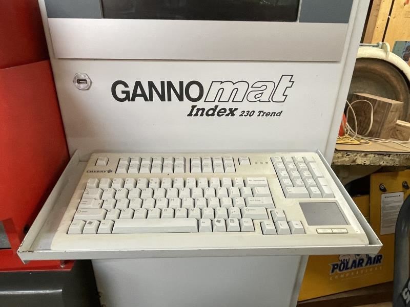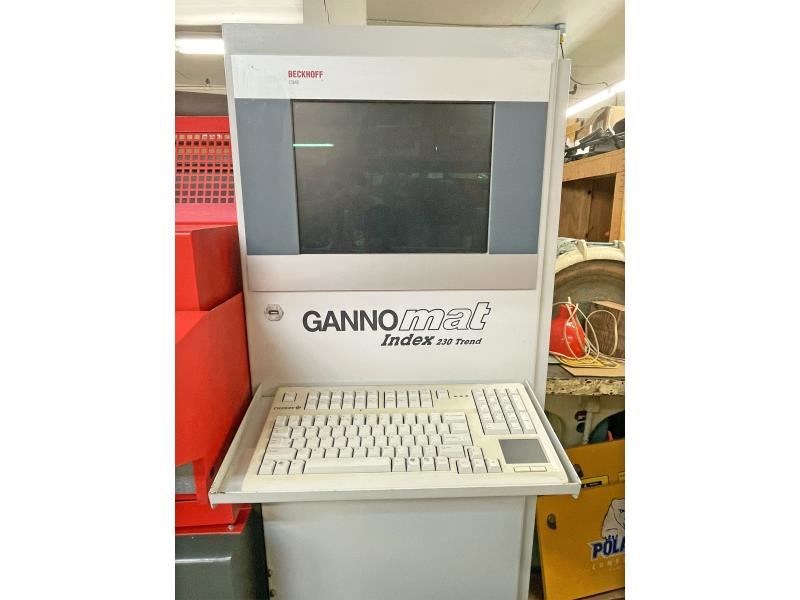 GANNOMAT INDEX 230 TREND CNC BORE, GLUE & DOWEL INSERTER: -- SpecificationsCNC Controlled horizontal Point-to-Point Drilling, Gluing & Dowel Inserting Work Center for absolute, incremental, variable (parametric) programming of boring patterns. -- Working FieldStop system (side fences) consisting of: Right hand, left hand, and center stop (all removable).(4) Independent zones for individual processing of (1 to 4) pieces. -- "X" Axis:Positioning speed: 246 FPM (75 MPM); CNC controlled and driven by rack & pinion for fast acceleration/deceleration of working unit. -- "Y" Axis:Set by mechanical digital counters. -- "Z" Axis:CNC Centering height adjustment of boring/inserting from the control. -- Working Length:2,300 mm (90-1/2") x 1/2" - 3-1/8" Material thickness; use as 2-field, LH & RH @ 1,150 mm (45-1/4") wide or 4-field with center fence, LH/RH - LH/RH @ field 570 mm (22.4") wide to increase throughput on smaller parts like drawers, stretchers, etc. -- Hold-down Cylinders:Total of (8) pneumatic, "quick change". -- Dowel Driving & Horizontal Boring:Integrated into (1) station; the dowel driving unit is located alongside the boring station; both units are mounted on (1) support. -- Horizontal Drilling Spindle:Can be setup for 6 - 8 or 10 mm, dowel length from 25 - 50 mm. -- Doweling Station includes Vibrating Hopper with: (1) Single-drop device and (1) outlet tube; insertion head & dowel driving with air impulse; mechanical dowel diameter & dowel length control prevents the insertion of any oversized dowels; setup for 8 mm dia. x 35 mm long dowels. -- Glue Valve/Amount:Controlled via software and can be adjusted by milliseconds; (2) standard separate stainless steel 1-1/2-gallons pressurized tanks (one for glue, one for water for occasional rinsing cycle). -- Operator & Machine Control: Windows "XP Pro" Operating System interphase and BECKHOFF "C3640 Twincat" PLC; easy to program GANNOMAT production software.Equipped with 15" Color monitor, CD-ROM drive, network card (for online operation); serial, parallel & USB interphase & soft-foil covered keyboard. -- Complete With: The unit is in good working condition. Includes docs, manuals and software CD's -- Options include:A new backup PLC that is unused. -- Actual model is: GANNOMAT INDEX 230 TREND.