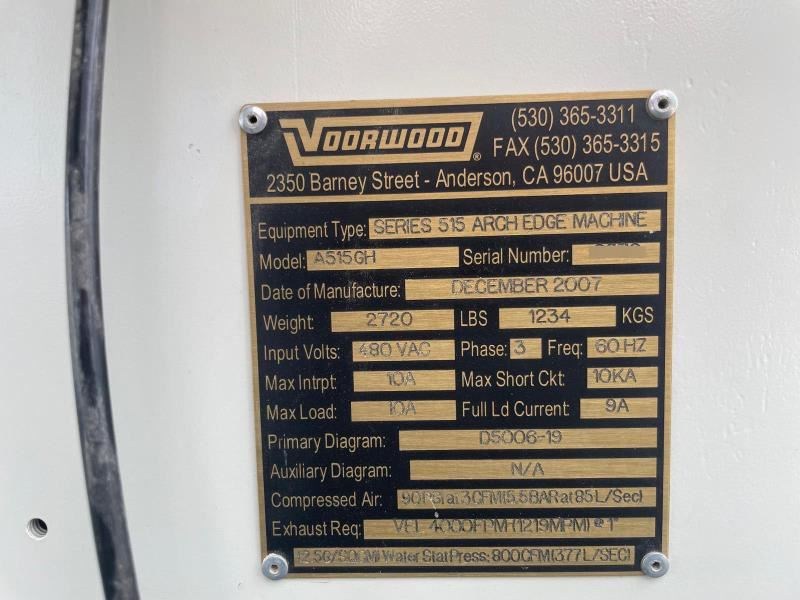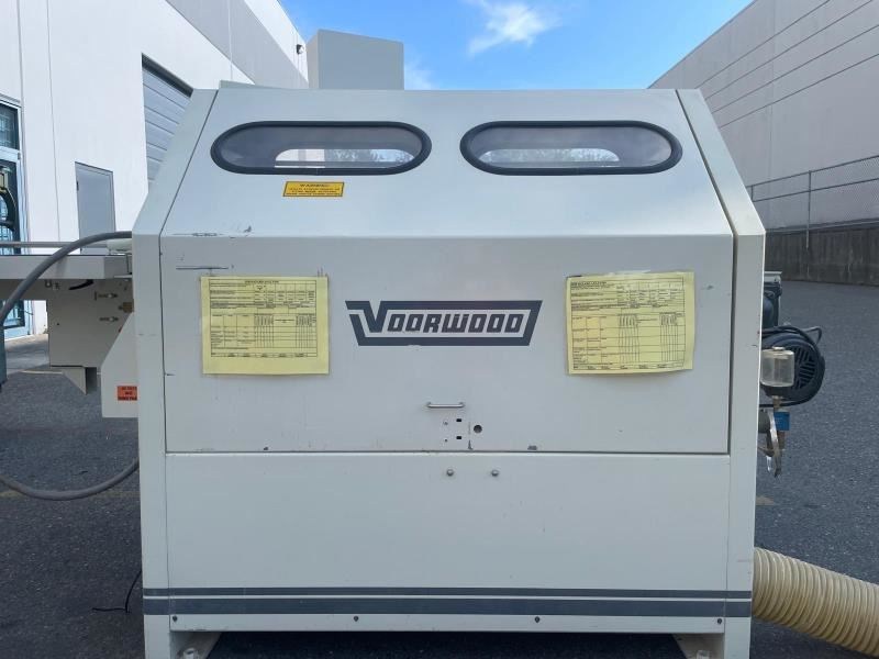 VOORWOOD "A 515 GH" Arch Door Sander with Floating Head ARCH SANDER with: (4) 1.5 HP Motors for precision sanding; quality sanding using Disc sanding at continuous feed. Equipped with: -- (4) Floating Sanding Stations equipped with: 1.5 HP Precision balanced drive motors and quick change spindles. -- Infeed & outfeed (1st and last) spindles equipped with: Double collets and angular, horizontal & vertical adjustments with accurate and repeatable digital readouts. -- PLC Control with: Monitor at eye level height.Feedthrough Arch Machine capable of sanding arch profiles on cabinet door components, plus can do straight cuts.. .