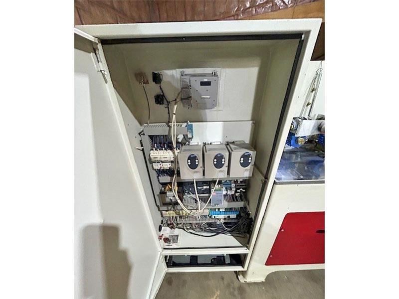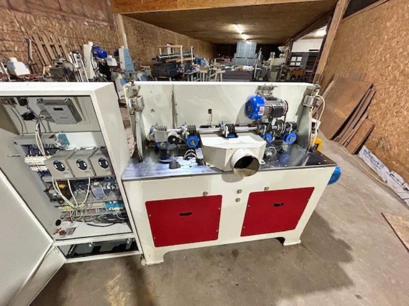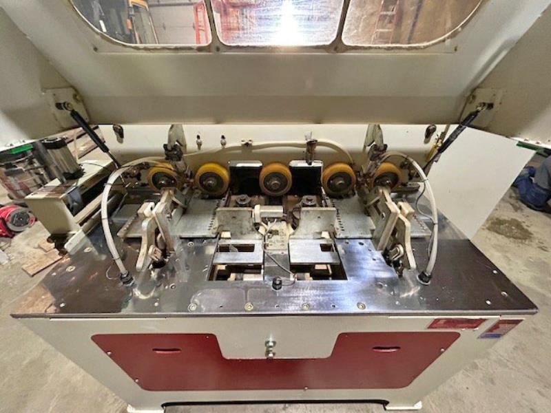 CANTEK - EM-10: Finger Jointer / End MatcherMachine arranged to finger joint but can be easily converted to end match.Specifications -- 1.6" - 10" Width x 3/8" to 1-3/8" thickness x 10.6" min. length capacity; Unlimited lengths possible.Feed speeds: To 295 FPM with approx. production speeds of 77 FPM (based on 6-1/2" incoming boards). -- With standard 118" long infeed table and standard 98" long outfeed table. -- (2) 7-1/2 HP Cutterhead motors; 40 mm spindle diameters; 1 HP feed motor; 1/2 HP motor drive to cutterhead carriage; clamping pressure from top & side.Standard Equipment & Features -- Heavy-Duty self-supporting main frame; compact design requires minimum floor space; capable of processing material as short as 11" to an unlimited length. -- Variable speed through-feed system is controlled by: Frequency inverter; through-feed system allows the fingers to be cut simultaneously on the tail of (1) board and the leading edge of the next board. -- Powered top urethane rolls & spring-loaded bed rollers feed the material into position for processing. -- Pneumatic side pressure ensures the material is held square against the fence. -- Complete safety & noise reduction enclosure; convenient touchscreen control is used to quickly activate & adjust the machine functions. -- Infeed & outfeed roller conveyor.