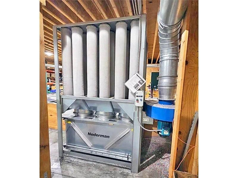 NEDERMAN S-750 Bag House Dust Collector7.5 HP - 1,750 RPM TEFC Motor. -- (24) BEANE material filter bags; (3) plastic waste collection bags; (3) clamps for easy removal of waste bags. -- Features: 243 Sq/ft. of filter media; easy installation typically (1) hour; quiet operation; (3) waste discharge points; 280 mm inlet. -- Unit is very versatile and capable of a nice range of operation; 2,500 CFM @ 10"Wg; 3,500 CFM @ 8"Wg; 4,500 @ 6"Wg. -- Magnetic starter included for 230 V - 3 Ph. -- 230 Gallon Dump Bin