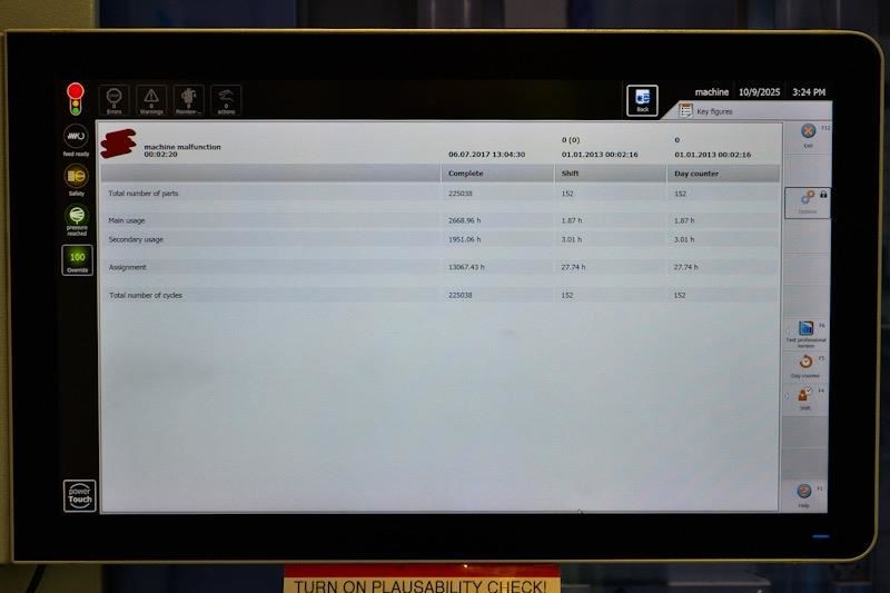 HOMAG BHX 200 OPTIMAT CNC MACHINING CENTER (VERTICAL W/ATC), with 2,668 Main Usage Hours (As of 10/9/25) -- Specifications:Flexible "Vertical" Machining Center with "ATC" that uses less than 5 meter² of valuable floor space in addition to an innovative panel handling system. -- Working Cap.:Max. workable part size for "X" axis is 120" (3,050 mm), "Y" axis 49.2" (1,250 mm), and max. part thickness 3.1" (80 mm).Min. worktable part size for "X" axis is 7.8" (200 mm), "Y" axis 2" (50 mm), min. part thickness of 0.31" (8 mm). Automatic infeed & outfeed from the LH or RH side. -- Positioning Speed:The BHX 200 can reach movement speeds of 164 FPM (50 MPM) in "X" & "Y" axis & 50 FPM (15 MPM) in "Z" axis with total safety, providing an unmatched working capacity. -- Boring unit:(1) 3 HP (2.3 kW), variable speed from 1,500 - 7,500 RPM motor, Split Head, (20) independent Vertical spindles, with (14) spindles in "X" axis & (6) spindles in "Y" axis.(16) Split Head, Horizontal spindles, with (6+6) in "X" axis & (2+2) in "Y" axis; Boring block has "QUICK CHANGE" spindle system, -- Operator Interface:Weeke "POWERTOUCH" + Windows + WoodWOP 6.1 + operating system; "IntelCore 2 DUO" Processor;21" TFT Monitor; international keyboard, soft-touch keypad & industrial mouse; RS-232 Serial ports, USB ports; modem, Ethernet connection.Real-time multitask processing; programs can be transferred via diskette or downloading by wire is possible. -- Complete with:Pneumatic part clamping devices; sound enclosure and complete set of safety devices. -- Options Include:(1) NC controlled 0° - 90° "X/Y" grooving saw; 9,000 RPM, saw blade dia. 100 mm;(1) 13.4 HP (10 kW) Electro spindle router with HSK F3 adaptor, variable speed from 6,000 - 24,000 RPM.(1) 4-position ATC tool rack mounted on the side of the machine base.(1) SYMBOL Wireless Handheld Barcode Scanner(1) AC unit for Electrical cabinet. -- Actual Model is WEEKE BHX 200 OPTIMATNOTE: Seller states that bits are fused in Boring Block. Stiles quoted parts to repair at $20,917 in May of 2025. Also, Seller must confirm specifications.
