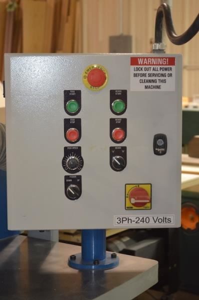 CIRCLE T LM116 Easy Lock Miter Joint MachineSpecifications: -- Material thickness 1/2" - 1″. -- Min. material width: 1-1/4″ & 2" (2-Sided). -- Min. material length 12″. -- Finish angles 30 - 90°. -- Spindle dia. 1-1/4″. -- Spindle speed 8,200 RPM.Equipped with: -- 5 HP Spindle motor. -- 1/2 HP Feed motor. Complete with: -- 11-Roll Variable Speed Positive Grip Feeder.