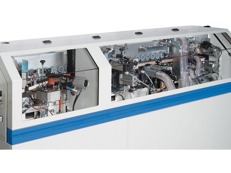 CASADEI (PUTSCH-Branded) EBP-950 EdgebanderSpecifications: -- Edgebanding thickness: 0.4 - 3 mm (0.02" - 0.12") Coil, 0.4 - 5 mm (0.02" - 0.20") Strip with Manual feed. -- Panel thickness 8 - 45 mm (0.31" - 1.77"), Min. panel width 95 mm (3.74"), & Min. panel length 110 mm (4.33"). -- Feed speed 9 MPM (29 FPM).Equipped with: -- Teflon-coated glue pot with (6) 1,315 W Heating elements with (4) in Glue pot, (1) in Turret & (1) in Glue spreading roller, Thermostatic glue control, and Automatic standby & Temperature display. -- Pneumatically-operated guillotine. -- Pressure section, with (1) Large driven & (2) Small idler rollers. -- Feed chain, with Scratch resistant, non-slip rubber pads. -- Top pressure beam, with (2) Rows of rubber rollers. -- Safety enclosure. -- PLC Control, with ETOUCH 7" Backlit LCD touchscreen display, 99-Program Storage, & Diagnostics.Workstations: -- Top & Bottom Flush/Bevel/Radius Trim Unit, with 0.22 kW (1/3 HP) - 12,000 RPM - 200 Hz Motors, 75 mm (2.95") Dia. Cutters with Disposable R1/R2 3"; Knives, 2 - 3 mm (0.08" - 0.012") Radii, & 15° Bevel. -- Edge Scraping Unit, with 2 mm (0.08";) Cutters.NOTE: Sold "As Is" Without Warranty!