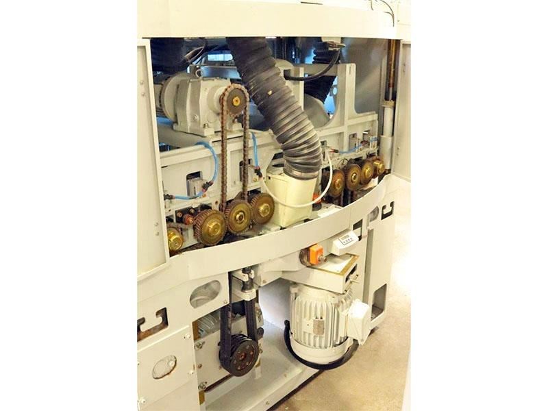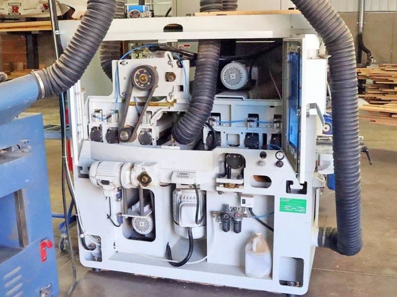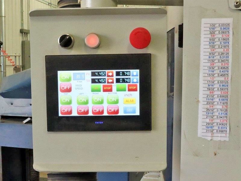 CAM-WOOD WP-20L8-V4X, 20"; WIDE X 5" HIGH 4-SIDED PLANER/MOULDER, (8" Optional)Planer or Combination Planer/Ripsaw is designed for furniture, cabinet, flooring, intermittent planing millwork, and other industrial applications. The perfect Planer for S2S and S4S planing, planing and ripping, tongue & groove flooring, wall paneling, etc. up to approximately 75 FPM depending on the depth of cuts and dimensions of parts.Working Capacities: -- Width: 3/4"; to 20";. -- Height: 3/8"; to 5", . -- Length: 20"; Minimum, Maximum Unlimited. -- Maximum Cutting Depth: Top & Bottom Heads 1/2";, Side Heads 1";. Included Tooling Is Slip-On Spiral or Profile Cutterheads: -- Standard with Slip-On HAR Series Profile / Spiral Cutter head. Profile Knives combined with 15 x 15 mm x 3° Carbide Insert knives. 1/2"; Max depth of cut. The top and Bottom spindles are 60 mm (2.36";) in diameter. Optional Profile Cutterheads Available. -- Left & Right-Side Spindles with Standard HAR Series Profile Heads. -- Max depth of cut 1";. With 40 mm (1.57";) Spindle Diameter. Cutting Circle from 6" to 7";. -- Left & Right-Side Heads will run profiles with owner-provided tooling. Quality Features = Long and Outstanding Performance -- Simple touch screen with Digital Positioning Controllers for width adjustment, thickness adjustment and variable feed speed. -- Hard Chrome Plated Table for long life and smooth feeding. -- Automatic Top Head Adjustment – cutter head height adjustment entered via HMI touch screen control with PLC. -- Floating Bottom Infeed Rolls for smooth, positive feeding. -- Variable Feed Speeds by VFD Controlled from Touch Screen. -- Heavy-duty Spindle Assemblies for durability & smooth finishes. -- Overhead assembly travels up/down and positions via touch screen control. Assembly is support by (4) hard chromed, polished posts and precision screws. -- Tables, fences, etc. are precision ground, polished and hard chromed to provide long life and smooth feeding. -- Massive, heavy-duty sheet metal frame aids in vibration absorbing finishes and extra-long bearing life. Compact construction with exclusive see-through top guard. -- Motor Control Center with under voltage and overload protection. UL and CSA labeled electric components. Motors and Feed Works: -- Top and Bottom Cutter Heads Motors, each: 15 HP, 5,000 RPM. -- Right & Left Side Cutter Motors, each: 10 HP, 5,000 RPM. -- Variable Feed Speeds from 20 to 65 FPM by VFD (invertor). -- Feed is powered by (2) each 2 HP VFD feed motors. -- (1) motor drives the top infeed and (1) Motor drives the top outfeed feed rolls. Top-powered feed rolls are air cylinder loaded / floating. -- (8) non-powered bottom rolls, (4) infeed and (4) outfeed.Machine Sizes / Dimensions and Weight: -- 76"; Length x 52"; Width x 71"; Height. -- Weight 4,920 Lbs