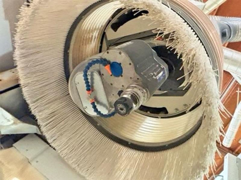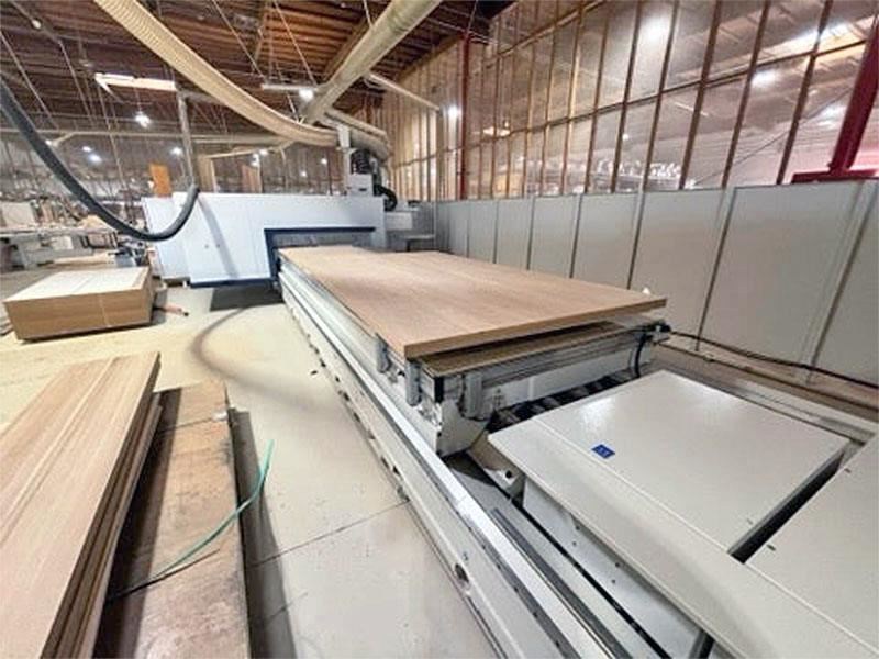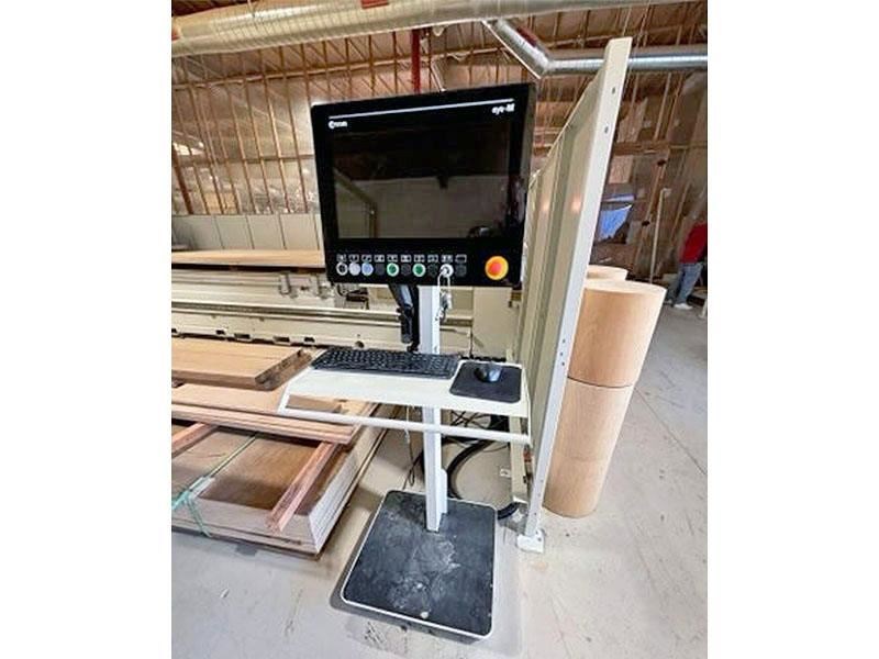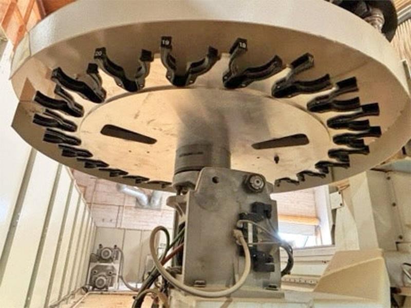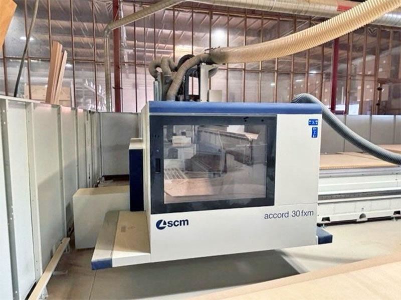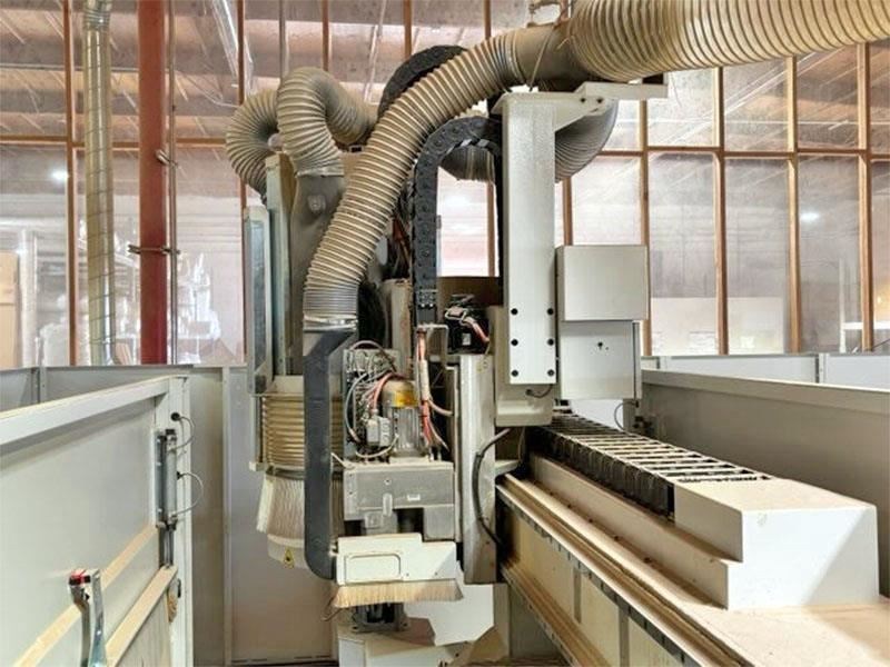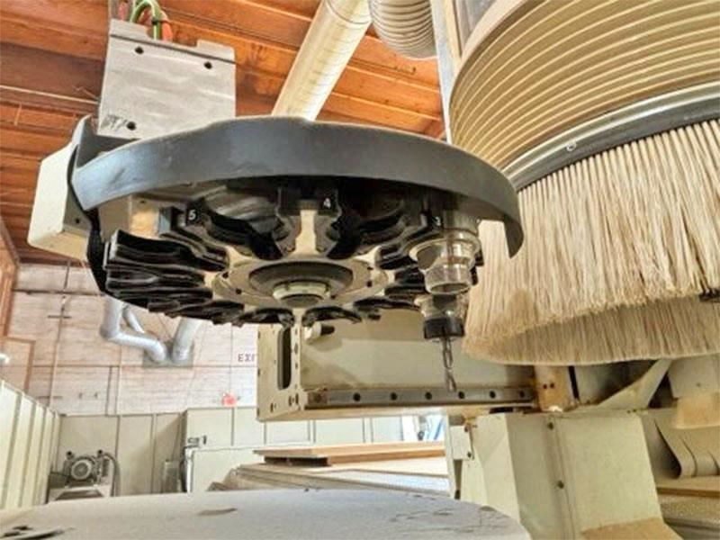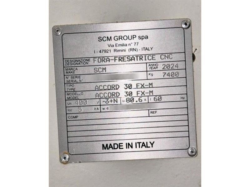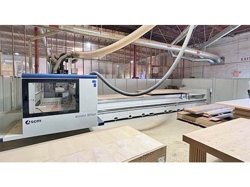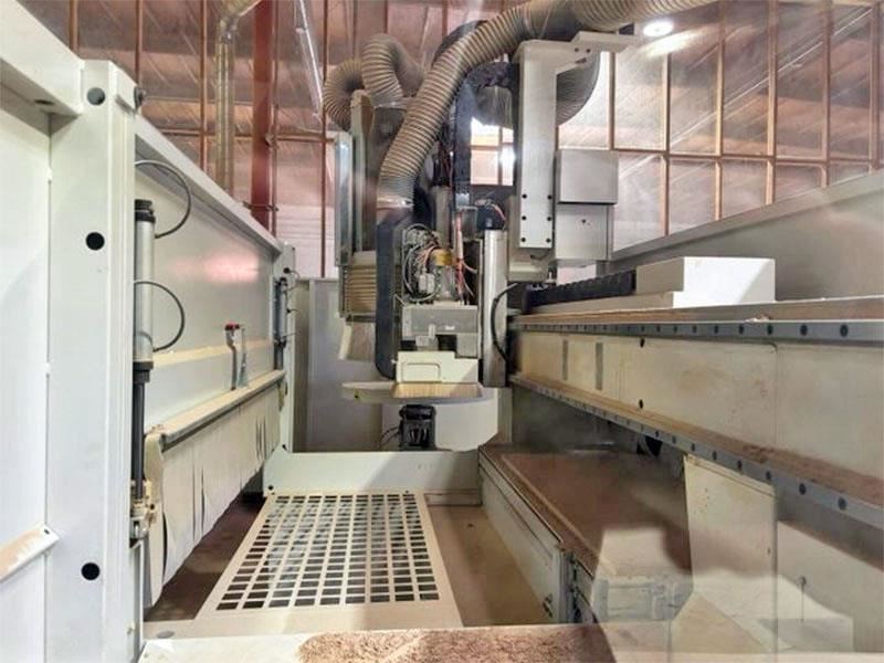 SCM Accord 30 FX-M 5-Axis CNC Router: -- Working SpecificationsTable Dimensions 12' x 5' (3,650 mm x 1,560 mm x 330 mm) or 143.7" x 61.4" x 13". -- Technical Specifications: C-axis stroke = 640°, B-axis stroke = 270°,Electro spindle with HSK F 63 quick-release tool-older, rotation speed 600 - 20,000 RPM, power max. 11 KW (15HP) from 15,000 RPM (on s1 duty) 7 kW (9 HP) from 7500 RPM (on S1 duty), 15 KW inverter (20 HP S6), automatic exhaust hood with several positions and ON-OFF by workpiece program, C-axis equipped with TTS locking system. -- Positioning Speeds Rapid traverse of x-axis = 90 m/min (295 FPM), rapid traverse of y-axis = 90 m/min (295 FPM), rapid traverse of z-axis = 30 m/min (90 FPM),Component passage 330 mm (13";) axes traverse X-Y-Z interpolating axes, Brushless motors. automatic lubrication -- Control Unit numeric control OFFICE-PC operating system using MICROSOFT Windows, 17" LCD display, hard disk 500 GB RAM memory network card. -- Operator Interface XILOG PLUS: Workpiece geometry programming by graphic editors or open editor,Automatic execution of a program or multi-concatenated programs subprograms and user macro-management, DXF files import, machining optimizer, multi-tool equipment management dynamic control of accelerations, safety devices, fixed metal bulkhead along two sides, photocells on two sides, anti-ejection bars on the machining head, access to both front and rear sides of the worktable. -- Complete with Air-conditioned electrical cabinet. PRISMA K machining head. Rapid 16 Position Tool Changer. Automatic tool touch-off probe. (2) 250 m³/Hr Vacuum Pumps. Perimeter Safety Devices -- Actual Model is SCM ACCORD 30 FX-M.