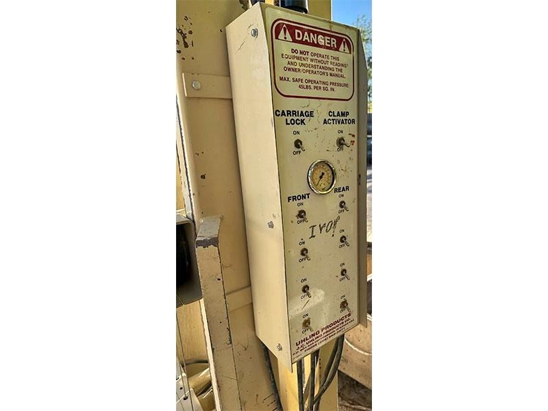 UHLING - HP-3000: Case Clamp (Single-Bay) -- SpecificationsClamping capacity: 72" L x 74" H x 24" D; Large enough for multiple boxes; offers versatility, quick 30-Sec setup or changeover. -- Pressure Elements(4) Dual air pod pressure bars that are pneumatically activated; counterweight balanced; just position them effortlessly and let go: Counterweight will keep them in place; no need to secure them! -- Air Pod Stroke3-1/2" Stroke of air pod with 0 - 120 PSI pressure adjustment. -- Vertical BeamMoves easily on roller bearings; pneumatic carriage locks with: (4) Small air cylinders from (1) control point. -- Operator Control Panel:Mounted on vertical beam so it is always where it is needed; single lever lock-or-unlock control & front/rear pressure selection. -- Counter SupportBy solid laminated panel opposite to pressure bars. -- Actual Model is: UHLING HP-3000