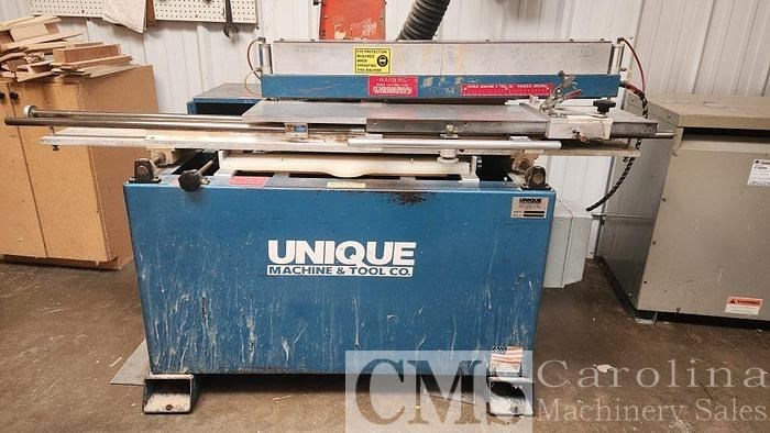 Unique 250 MC Raised Panel Door Machine Seller’s Specfication: - Cathedral and Crown Patterns Included - 50? capacity - 5HP main motor - 1-1/4? stackable mliti-cutter spindle to stile/ rail and raised panel profiles - Puch button preset indexing at each station, table w/ pneumatic hold-downs - 2-axis linear movements for straight or cathedral top doors and dust collector hood