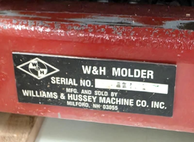 WILLIAMS & HUSSEY Planer/MoulderSmooth moulding & planing; used for making: Custom trim, molding, & millwork. Creates a variety of moldings, plus oval & round frames and curved-top frames.Specifications. (1) 2 HP BALDOR Motor; 3,450 RPM spindle speed; feed rate: 15 FPM.Capacity: Max. material width 6"; material thickness from: 3/4" - 8" Max.; min. 9" stock length. - Max. profile depth: 3/4"; max. profile width: 6-3/4"; planes: 7" wide & 7" radius with: Optional jig; working height: 31"; overall height: 45", overall width: 20".NOTE: Specifications based on Model "154" & listed electrical plate; exact model is unknown/not on machine.