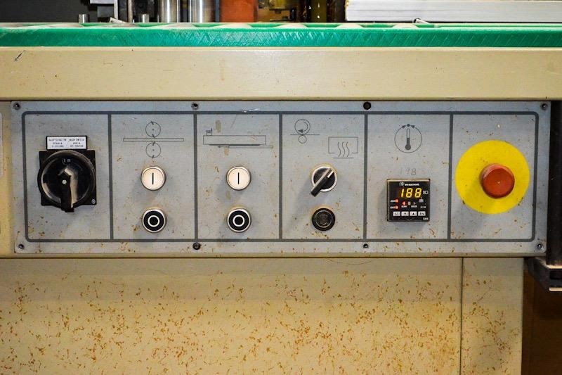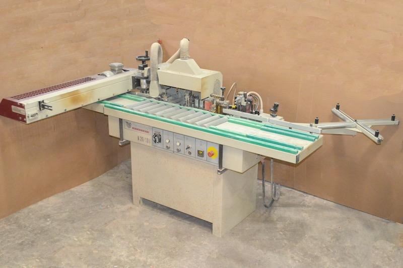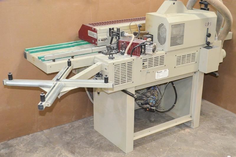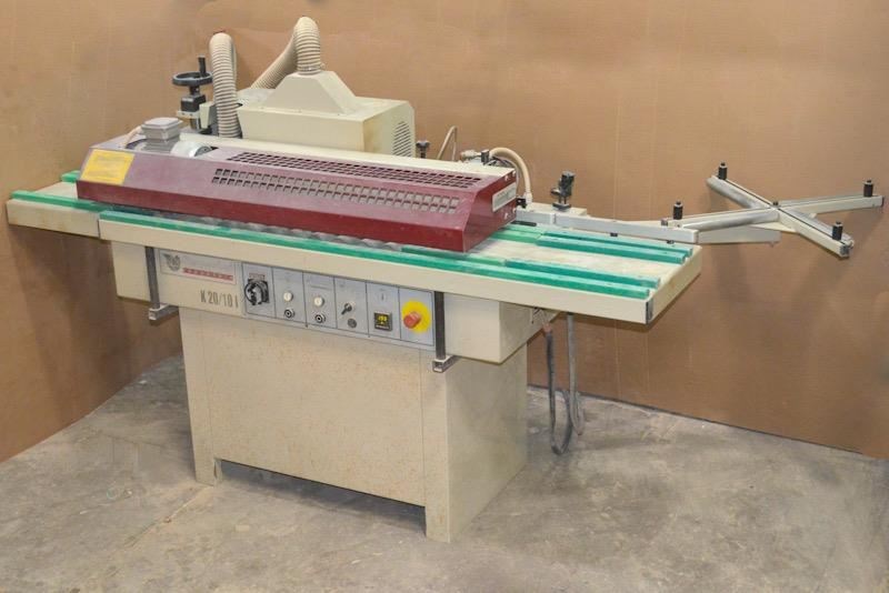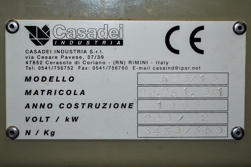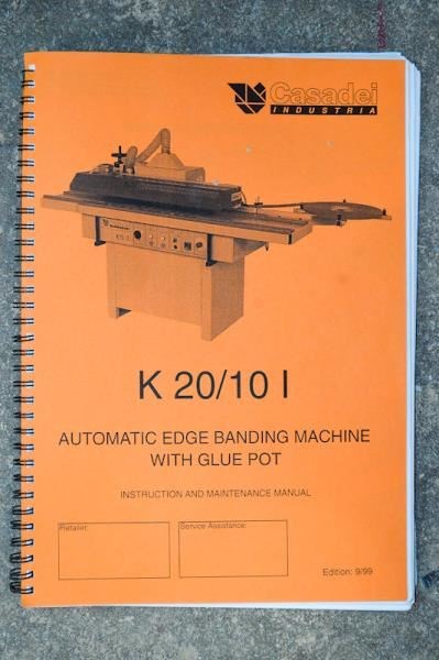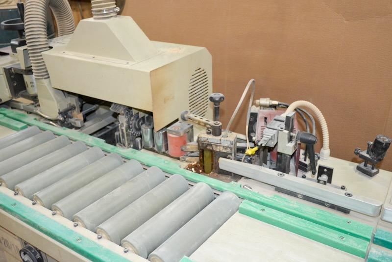 CASADEI K 20/10 I Compact EdgebanderSpecifications: -- Edgebanding thickness 0.4 - 3 mm (0.02" - 0.12"), -- Panel thickness 10 - 45 mm (0.39" - 1.77"), Min. panel width 90 mm (3.54"), Min. panel length 280 mm (11.02"). -- Feed speed 6 MPM (19 FPM). -- Table size 600 x 1,650 mm (23.62" x 64.96").Equipped with: -- 600 mm (23.62") Dia. Coil table. -- Automatic coil feed & Manual feed for HPL strips. -- Guillotine. -- Glue pot. -- Pressure section, with (3) Pressure rollers. -- 1/4 HP Feed belt motor. -- Front extension table & Outboard support. -- Control with Temperature controller with LED Display & Touchpad.Workstations: -- Front & Rear End Trim Unit, with 80 mm (3.15") Dia. Blades. -- Top & Bottom Flush Trim Unit, with Speed 9,000 RPM & 70 mm (2.76") Dia. Blades.Complete with: -- Instruction & Maintenance Manual.