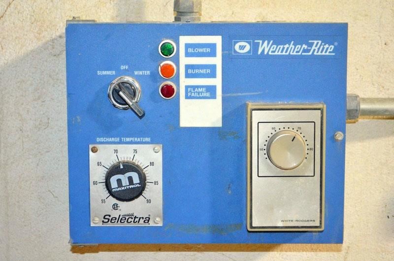 WEATHER RITE TOT230VTL Outdoor mounted Heated Air Makeup unit We have a nice sized ground mounted air make unit available, There will be a loading charge for this which will be quoted at the time of the sale. There is a bearing noise on the blower so that may need to be replaced the unit is currently running. Specifications: -- Natural gas fired Air Make-Up Unit that generates up to 5,832,000 BTU. -- 40 HP single speed motor requiring 125 Amp capacity circuit. --456 RPM blower rated for 60,000 CFM, exterior ground mounted. -- 5 PSI gas pressure natural gas inlet pressure. -- MIDCO burner 12' - 10' Linear. -- Filter type requires Polyester Qty (6) 2"x20"x20" and Qty 30 2"x20"x25". You should also be able to use continuous filter media. Equipped with: -- MAXITROL Temperature control system, Fire Eye electronic flame suppression system. -- Features: 90° Temperature rise capacity.approximate weight 7,300 lbsNOTE: will be avaiable Early December possibly earlier.
