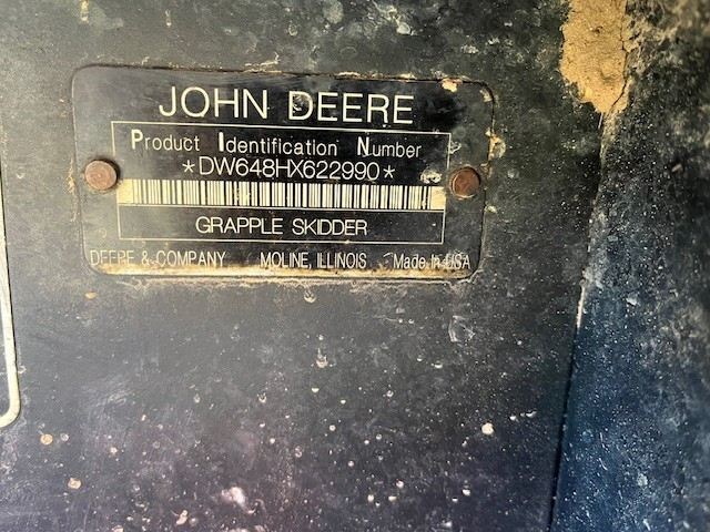2008 Deere 648H Dual Arch Grapple Skidder with Winch, TC Trans, 30.5 Rubber. Enclosed Cab.