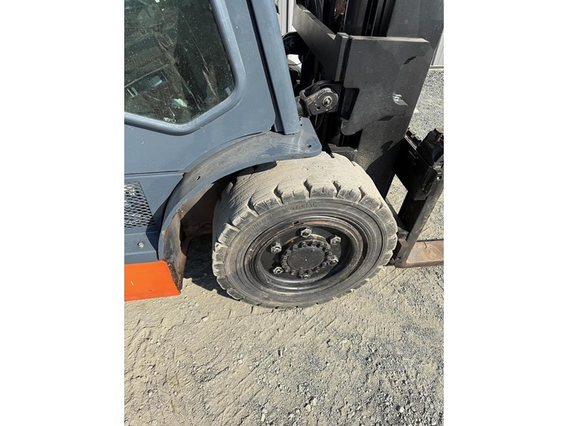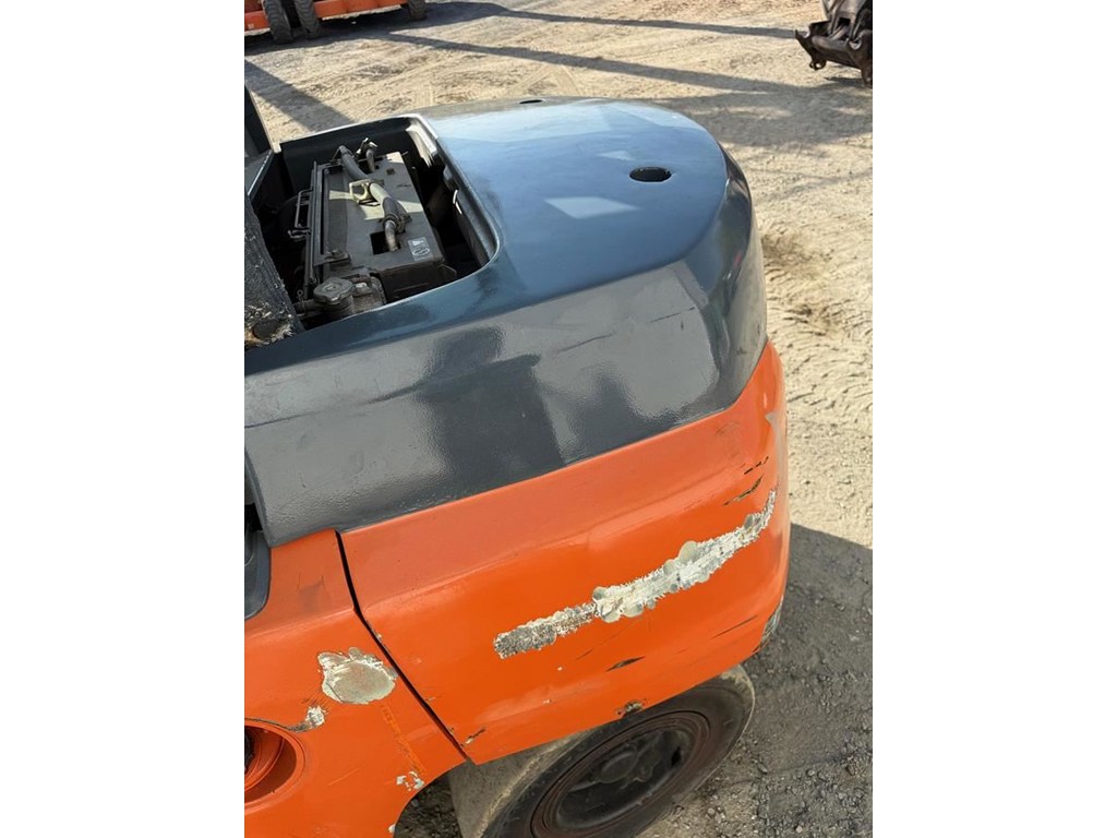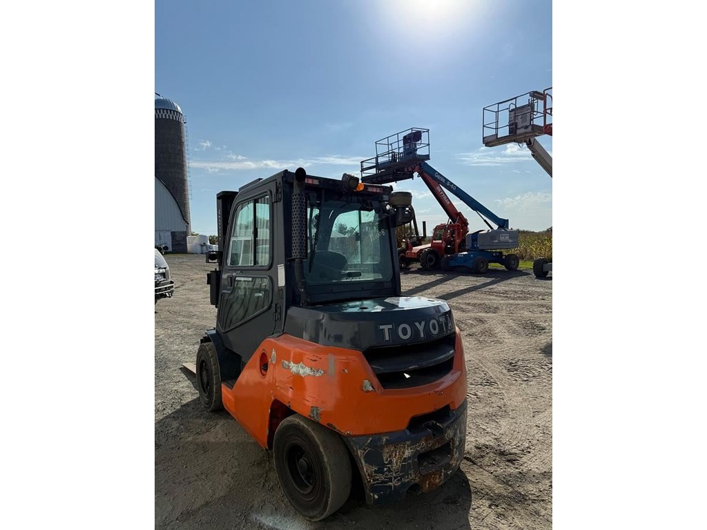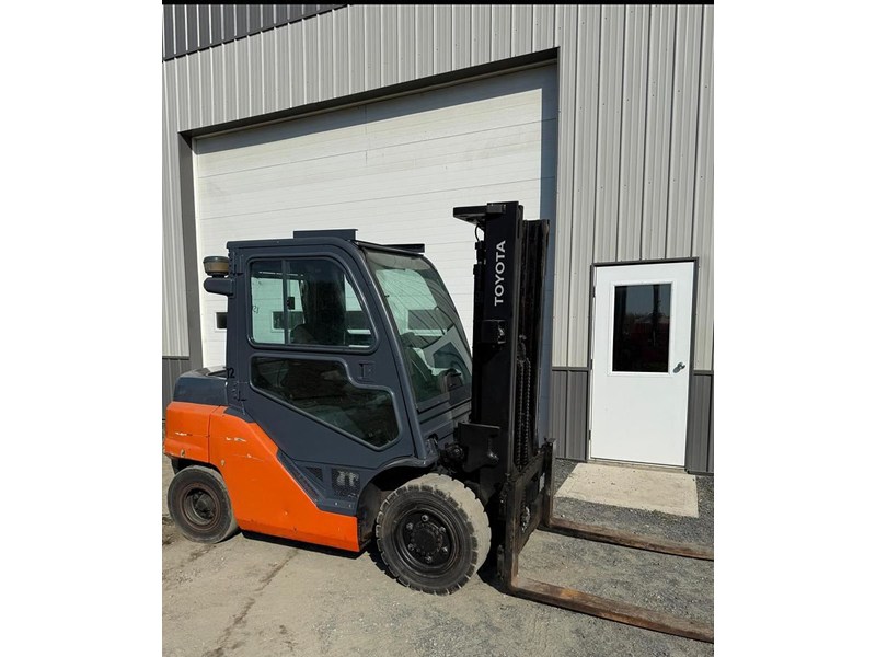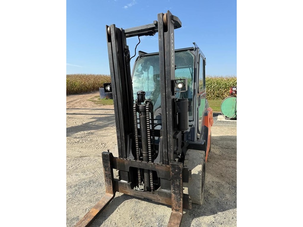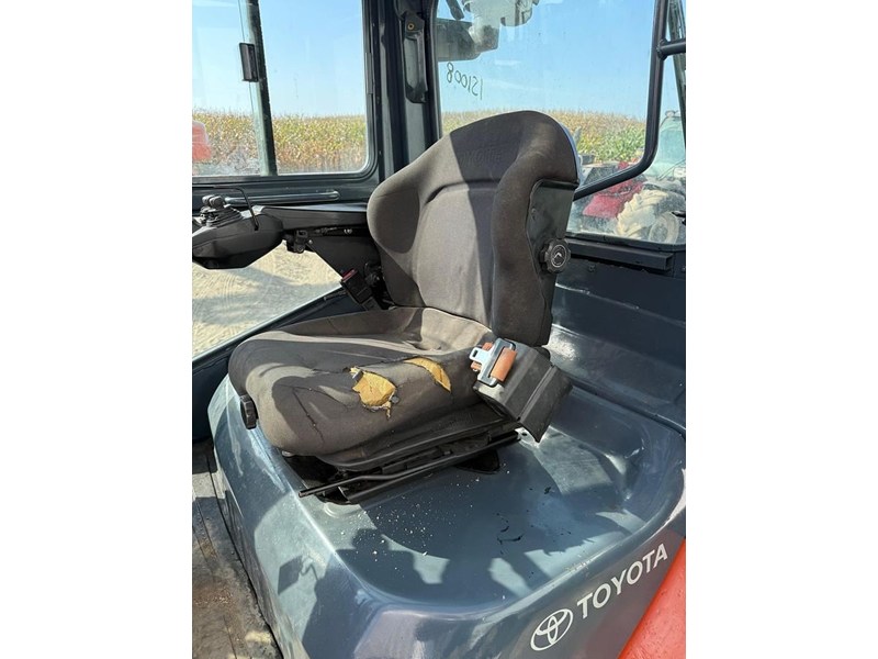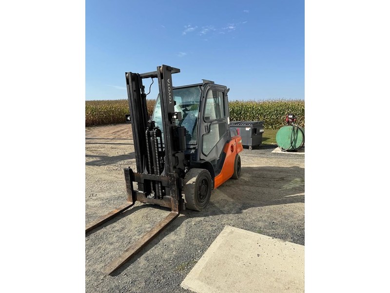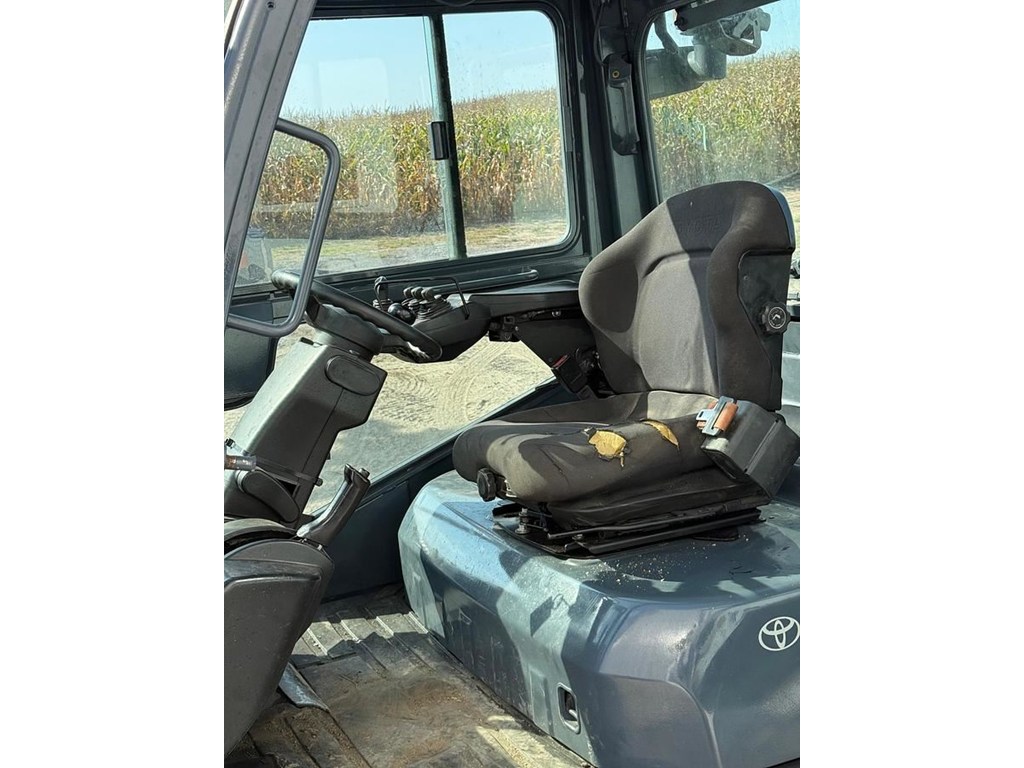 Toyota 8FD40U Forklift 2016 model with 7,678 hours. Diesel engine, 9,000 lb. lifting capacity, and 11' lift height. Equipped with solid rubber tires and a cab with heat. Features a new transmission pump and has been completely checked throughout. In good condition. Ready for work. Make an OFFER today.