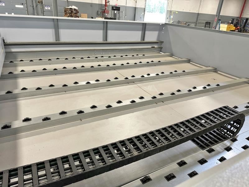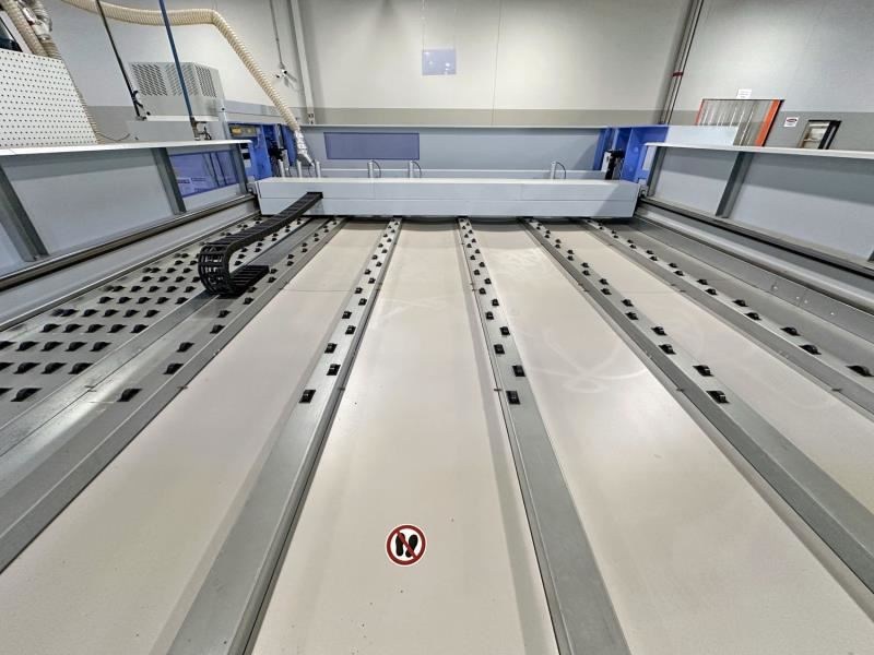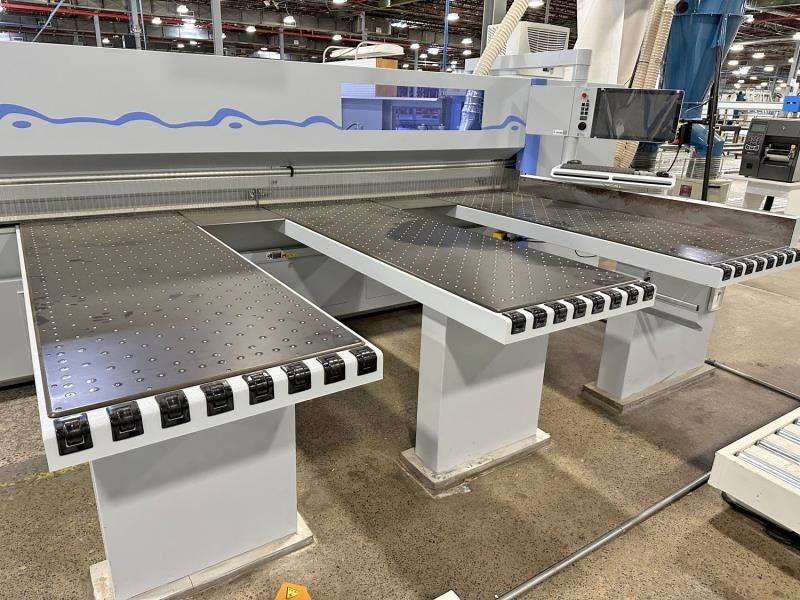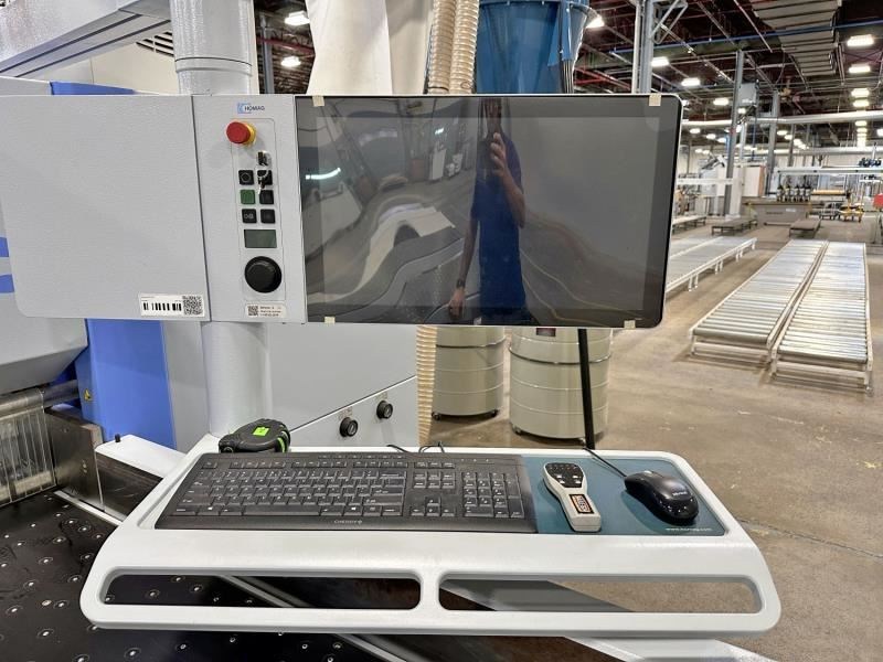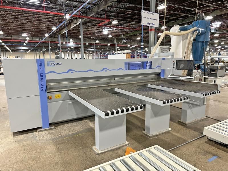 HOLZMA - HPP 300 38/38: Front Load Automatic Panel Saw -- Specifications Front-Load Machine Cutting Length: 149.6" (3,800mm) Main Saw Motor: 28 HP Scoring Saw Motor: 3 HP Main Blade Projection: 3.7" Main Blade Size: 380mm, 60mm Bore Saw Carriage Forward Speed: 0 - 492 FPM Saw Carriage Reverse Speed: 492 FPM Program Fence Speed: 295 FPM Industrial PC, w/ Homag powerTouch Wide Screen Control System Nine Two-Finger Gripper Clamps Three Air TablesActual model - HOLZMA HPP 300 38/38 US Edition.