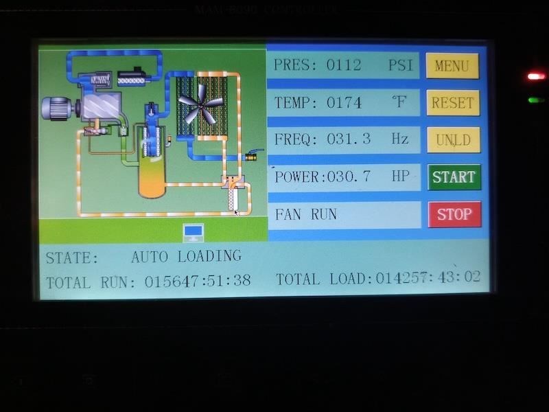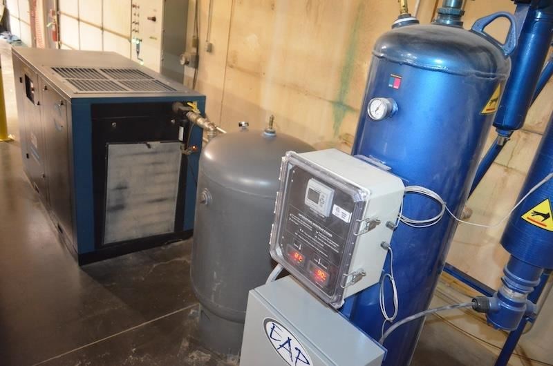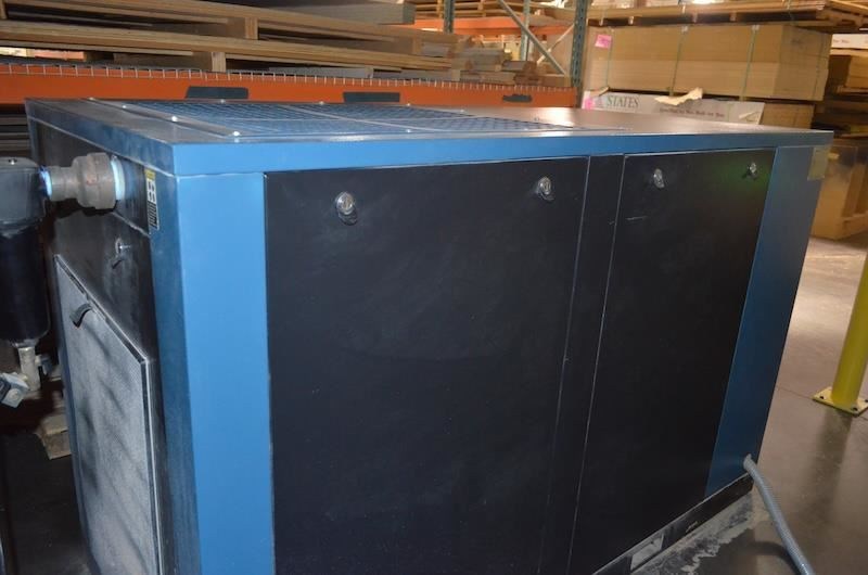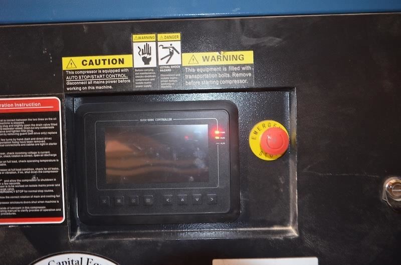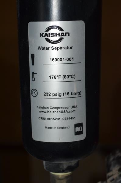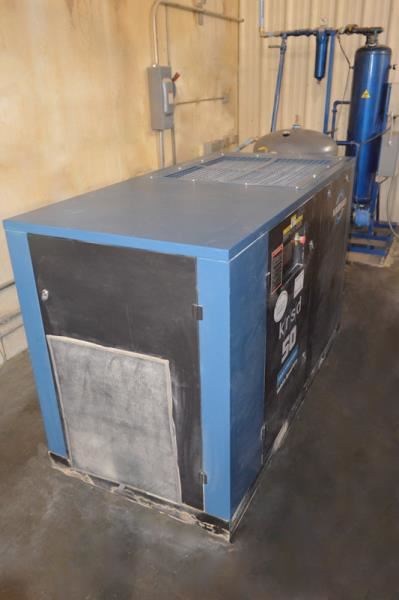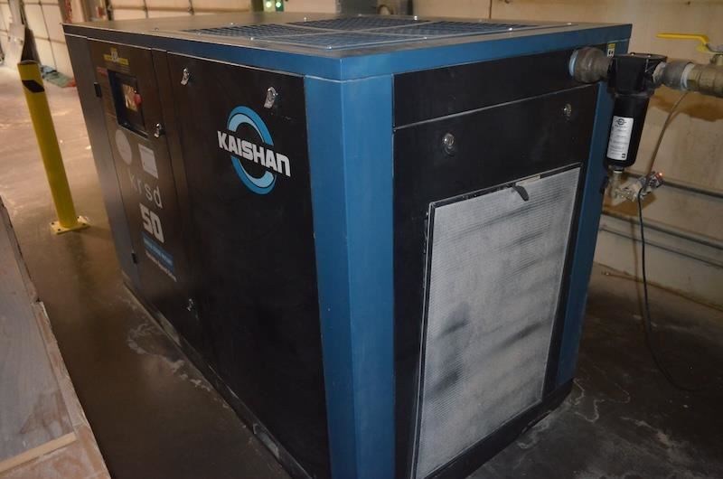 KAISHAN KRSD-50-125VSD 50 HP Variable Speed Rotary Screw Air Compressor, (Installed in 2020), with 15,643 Run Hrs., 14,253 Load Hrs. (As of 10/2/25), Dessicant Dryer, Vertical Air Receiving Tank, (Has had service contract for life of package.)Specifications: -- Rated discharge pressure 135 PSI. -- Rated speed 3,570 RPM.Equipped with: -- "MAM-6090" Digital Controller, with Color LCD display, Graphic interface, & TouchpadComplete with: -- KAISHAN "160001-001" In-Line Water Separator. -- 2019 ICP "iSTE-300" 300 SCFM Single-Tower Heat Reactivated Desiccant Compressed Air Dryer, with Max. allowable working pressure 150 PSIG, Operating pressure 100 PSIG, Max. temperature 100° F, & ALLEN-BRADLEY "Mirco810M 12AWA" Digital Controller with LCD Display. -- 2019 MANCHESTER 120 Gallon Vertical Air Receiving Tank.Compressor Package Dimensions: 192" x 65"; x 93"; H.Compressor Weight: 960 kg (2,116 Lbs.)