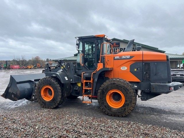 2023 Develon DL320-7 Wheel Loader, Low 500 Hours, JRB 418 Coupler, Aux Hydraulics, Bucket. Great Pricing with Warranty and Financing.