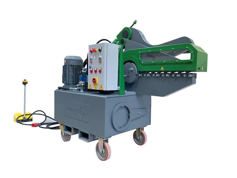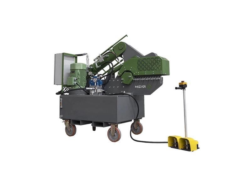 MIZAR- 16" BLADES" Alligator Shear - IN STOCK -- Blade Length: 15,75 in (400 mm) -- Cutting Speed: 8-9 cuts/min. -- Cutting Force: 221.000 Lbs -- Pressure: 160 bars -- Motor: 7,5 kW -- Width: 36 in Length: 71 in Height: 59 in -- Weight: 2750 Lbs -- Electrical Components: Siemens -- 1 Year Warranty