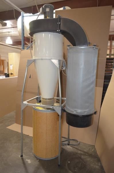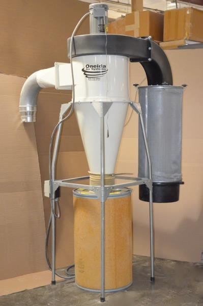 ONEIDA AIR SYSTEMS 3 HP Cyclone Dust Collector, with Cartridge FilterEquipped with: -- 3 HP - 3.450 RPM - 208-230/460 V TEFC Motor. -- Cartridge Filter. -- 55 Gallon Steel Drum Dust Bin.