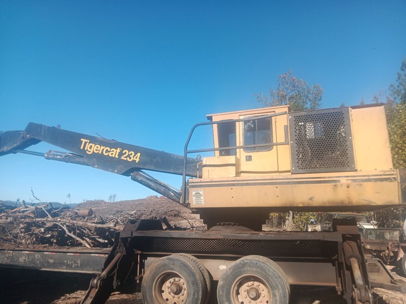 Just IN On Trade- Tigercat 234 log loader with CSI 264 Ultra pull thru delimber sitting on a hydraulic trailer. Fresh off a job- would take dozer or excavator on trade