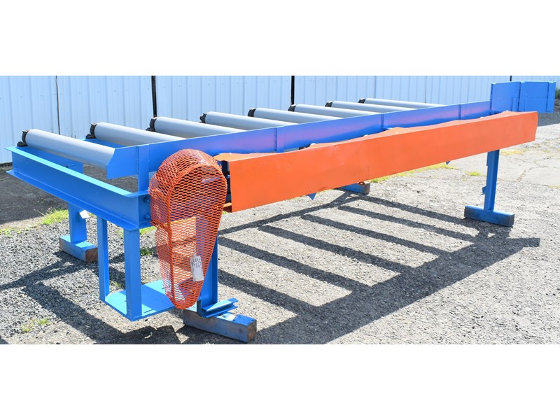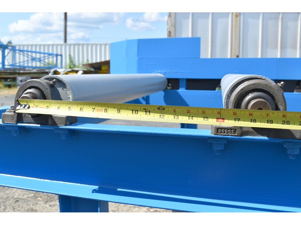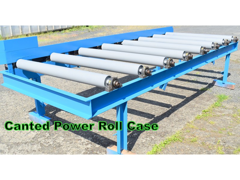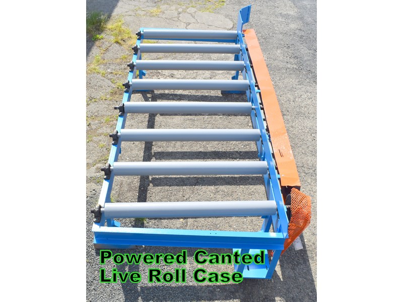 Canted live roll case 12ft +-, 8 rolls, Powered chain driven, Power Conveyor roll case 8 rolls 18” +- on center Roll length: 50 inch Gear motor available Dodge bearings Shipping dimensions: 62”W x 13ft long +- X 4ft tall?? Weight: 1,300 LBS, Test run videos and additional photos available. Contact us for pricing & a freight rate.